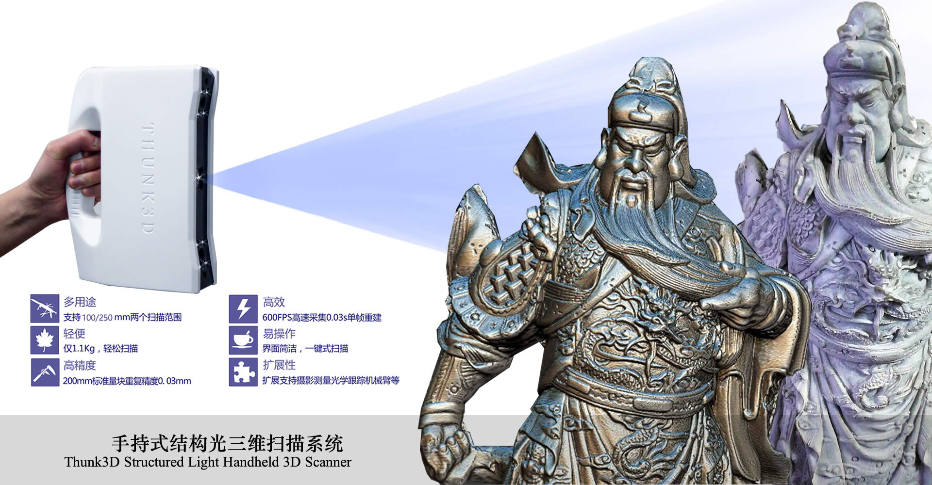 HSCAN-S是基于實(shí)時(shí)三維重建應(yīng)用場景設(shè)計(jì)的高集成度易操作的手持式三維掃描系統(tǒng),可實(shí)現(xiàn)0.03秒高速掃描并一鍵自動(dòng)完成點(diǎn)云全局注冊,去噪融合,無損網(wǎng)格化,補(bǔ)洞,曲率抽樣生成STL標(biāo)準(zhǔn)三維格式。系統(tǒng)基